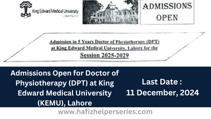 Admissions Open for Doctor of Physiotherapy (DPT) at King Edward Medical University (KEMU), Lahore KEMU DPT admissions 2024