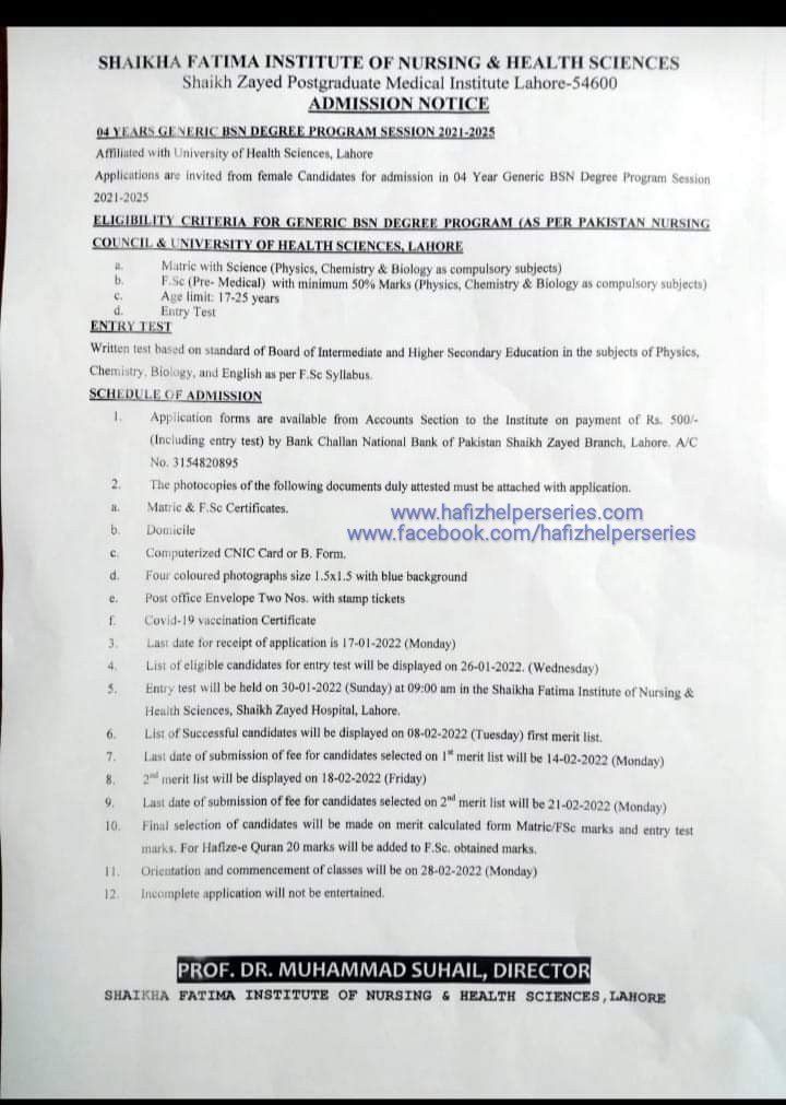 BSN Generic Nursing Admissions 2022 || Sheikh Zeyad Medical College, Lahore