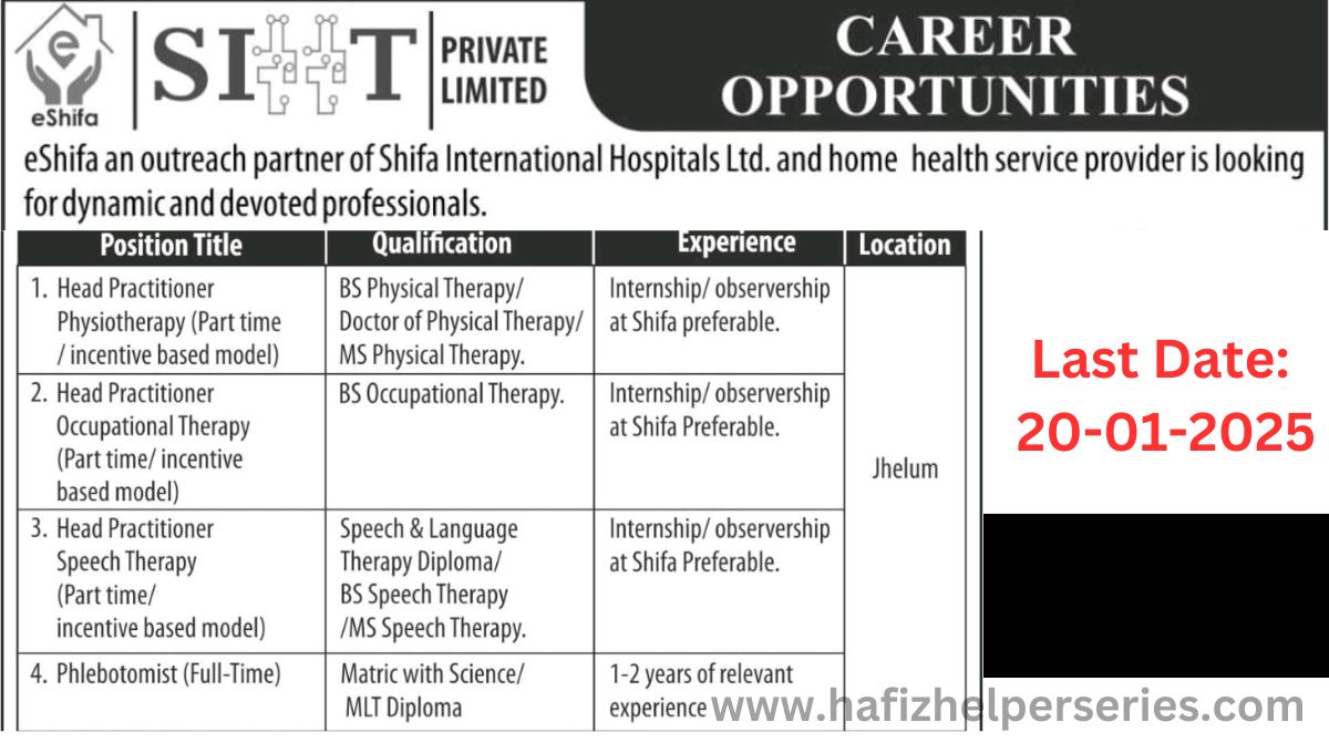 eShifa, an outreach partner of Shifa International Hospitals Ltd., is a leading provider of home health services, committed to offering personalized and professional care. We are seeking dynamic, passionate, and skilled professionals to join our team and make a difference in community healthcare. Explore the following career opportunities available at eShifa: