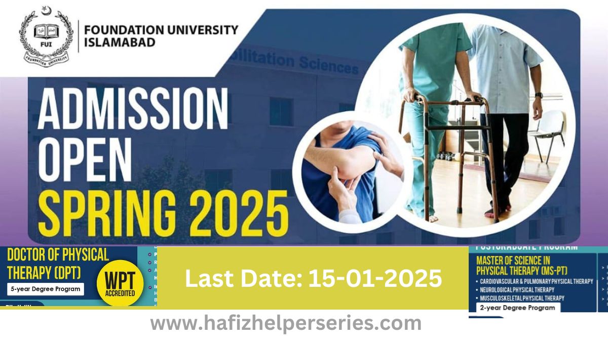 Foundation University Islamabad (FUI), a premier institution in Pakistan, invites applications for the Spring 2025 Admissions in the prestigious Doctor of Physical Therapy (DPT) and Master of Science in Physical Therapy (MS-PT) programs. With a strong emphasis on global standards, advanced facilities, and unmatched clinical exposure, FUI is setting benchmarks in Rehabilitation Sciences education.